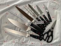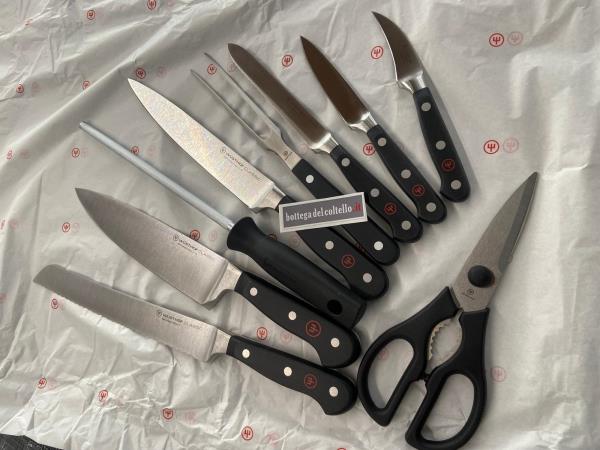 Ceppo Wusthof 1090170901 in legno di faggio con 9 utensili della serie Classic, manico POM nero.